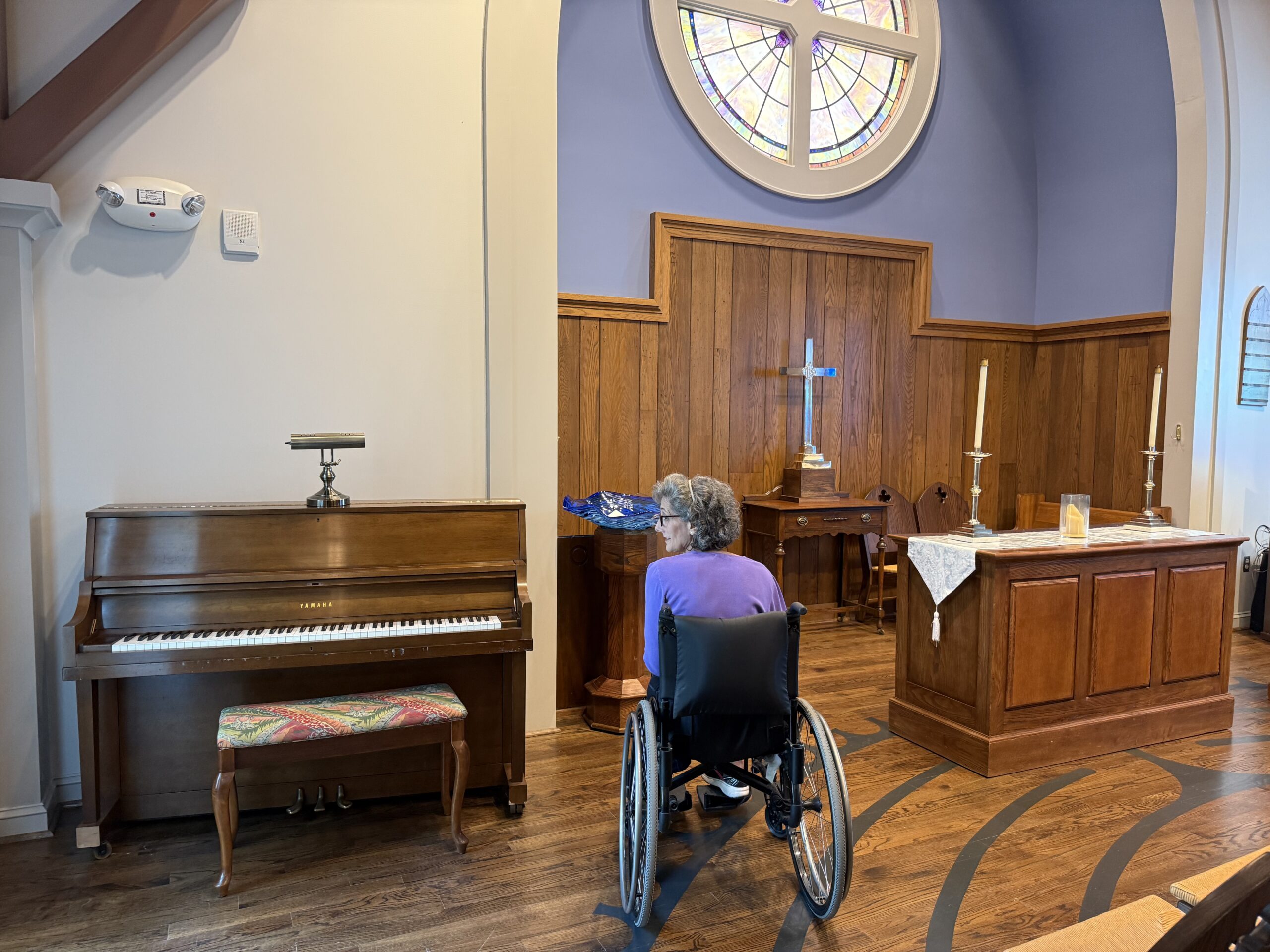 6. Going towards the piano in Chapel